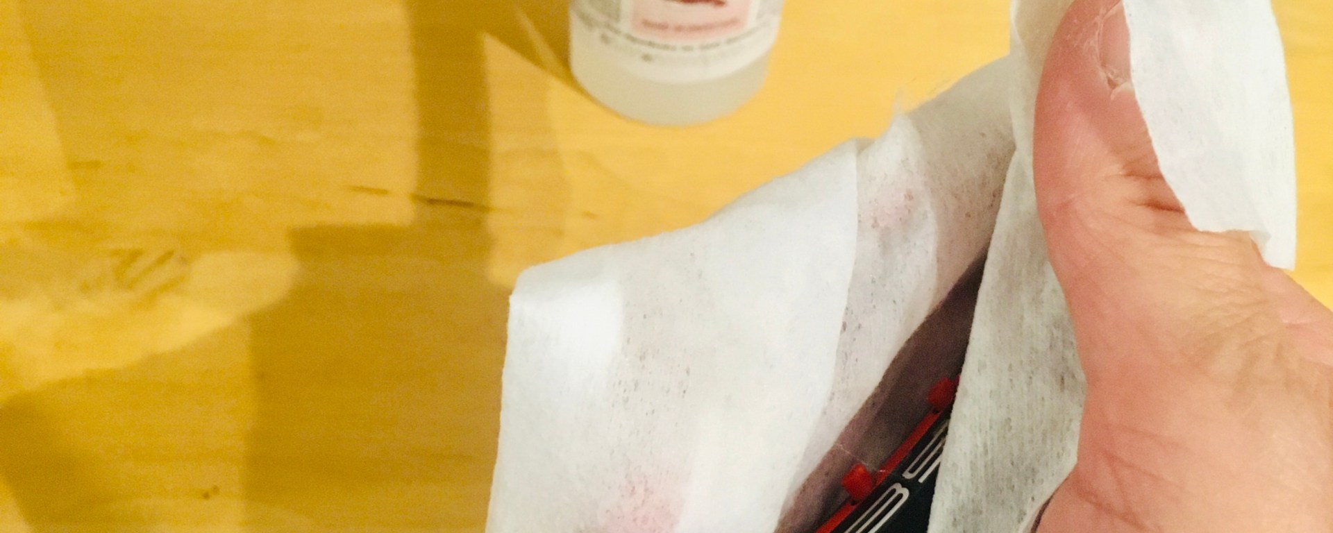 Bei Noris-Besaitungstechnik werden alle Rahmen vor dem Besaiten desinfiziert und bekommen bei der Annahme oder nach dem Griffwechsel aus Hygienegründen eine superdünne Griffschutzfolie.