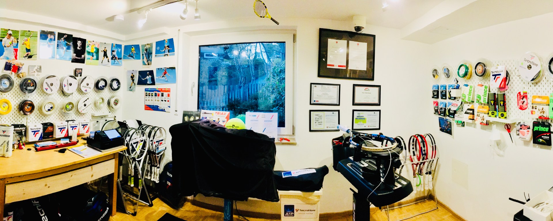 Consistency that meets all requirements. 3 top stringing machines and 3 permanent qualified stringers, two with coaching qualification and one of them USRSA Master Racquet Technician certification and tour stringer.